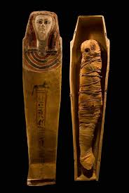 1.- Una momia es el cuerpo de un ser humano o animal que ha sido conservado a través de la eliminación de los órganos internos, tratados con natrón (carbonato sódico decahidrato) y resina, y envuelta en vendas.